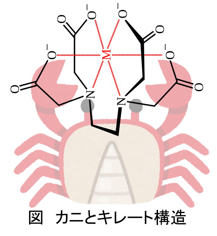 構造図引用:https://commons.wikimedia.org/wiki/File:Metal-EDTA.svg?uselang=ja#%E3%83%A9%E3%82%A4%E3%82%BB%E3%83%B3%E3%82%B9